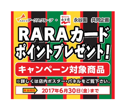 「アークスグループ&永谷園共同企画 RARAカードポイントプレゼント!」(実施期間:6月30日まで)