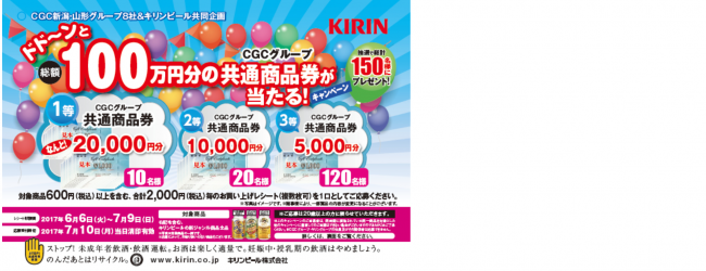 (株)ウオロクは、CGC新潟・山形グループ8社&キリンビール共同企画「ドド~ンと総額100万円分のCGCグループ共通商品券が当たる!キャンペーン」を実施する。