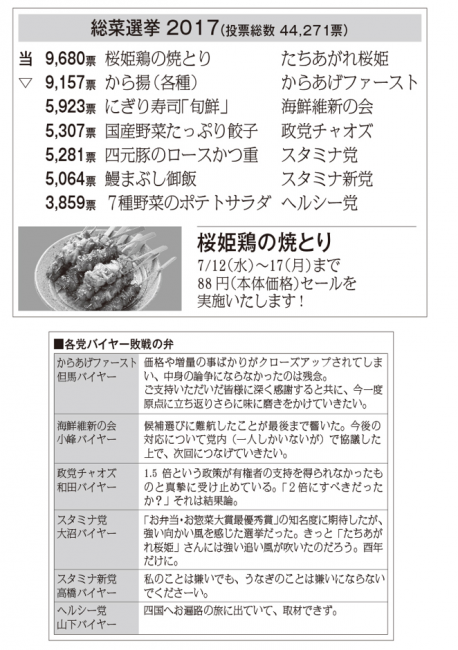 サミットnews|総菜選挙2017「桜姫鶏の焼とり」当選! 公約88円セール実行