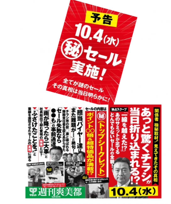 ●10.4(水)マル秘セール!実施 全てが謎のセール 内容は当日明らかになります (2017.9.27)