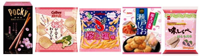 オリジナル開発商品は、「グリコポッキー贅沢ショコラティエさくら味」(338円本体価格:以下同じ)、「カルビーポテトチップスふんわりと桜が香るわさび味」(98円)、「カルビーかっぱえびせんほんのり桜と塩味」(98円)、「栗山米菓瀬戸の汐揚桜えび風味」(178円)「岩塚製菓味しらべ桜もち風味」(198円)など。