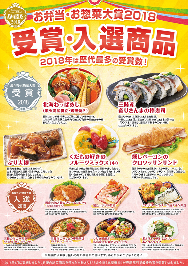 サミット(株)(東京都杉並区、竹野浩樹社長)は、「デリカテッセン・トレードショー2018」の主催者企画「お弁当・お惣菜大賞2018」で入賞・入選した商品をセール販売する。