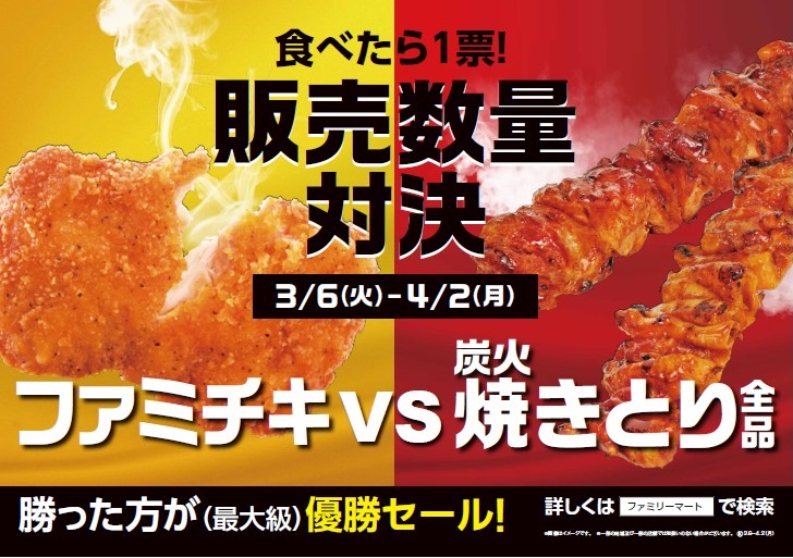 また、「チキンフェスティバル」との連動企画として、対象期間中「ファミチキ」と「炭火焼きとり全種」の販売数量対決を実施する。販売数が多かった商品は、後日、優勝セールが行われる。対決の様子は、Twitter・LINE・Youtube・HP等で配信される。