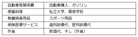 3月の消費支出が多かった品目は以下の通り。授業料等は新年度、入学金等で出費がかさむこの時期ならではのものだ。外食の飲酒代、すしもやはり新年度を迎える歓送迎会シーズンの影響だろう。