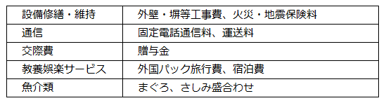 減少した項目は5項目。魚介類が減少しているが、スーパーマーケットの統計調査でもまぐろなどの水産品販売は不調と報告があった。