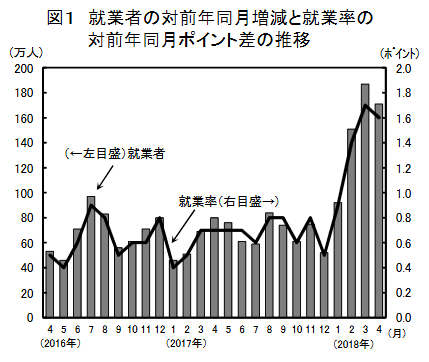 総務省統計局から4月の「労働力調査(基本集計)」速報が発表された。