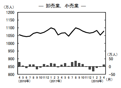 4月労働力調査統計|卸売・小売業12ポイント増の1078万人/完全失業率2.5%