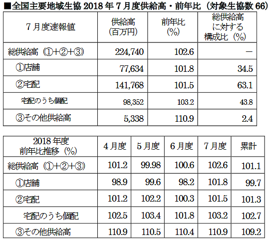 7月生協統計|店舗販売・宅配ともに伸びて供給高2.6%増
