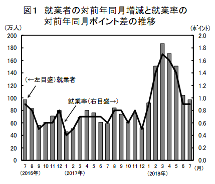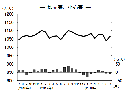 7月労働力調査統計|就業者67カ月連続増/完全失業率2.5%/商業0.8%減少
