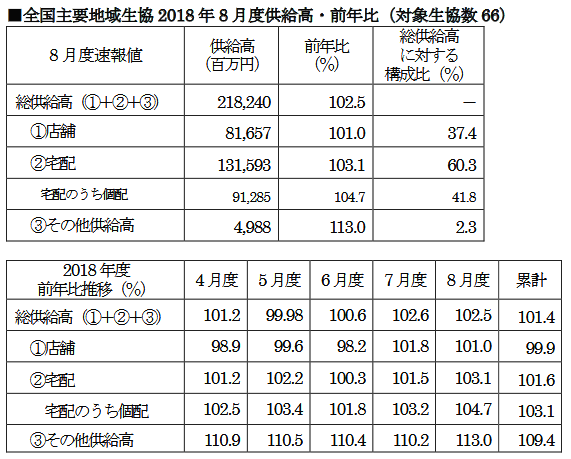 8月生協統計|夏需好調で供給高2.5%増/宅配41カ月連続伸長