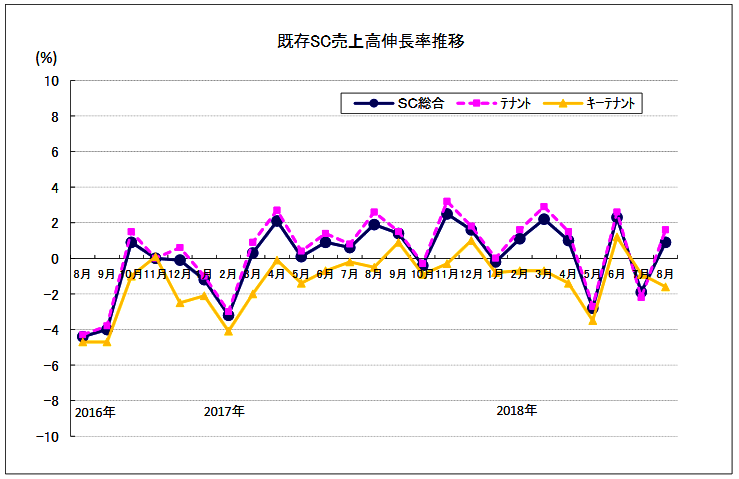 一般社団法人日本ショッピングセンター協会から、8月のショッピングセンター(SC)販売統計調査が発表された。