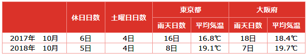 10月は、月初めに台風接近はあったものの比較的天候に恵まれたことで、客数が2.2%伸長した。それにより売上げは1.7%増加して、26カ月連続で前年を上回った。前年に比べて東京都は8日雨天日数が少なく、大阪府も11日少なかった。また、気温は、東京都、大阪府ともに前年より高かった。
