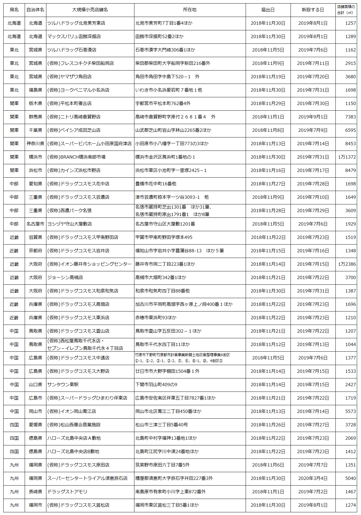 また、毎月出店の多いコスモス薬品は、1500㎡前後の店舗を12件申請した。