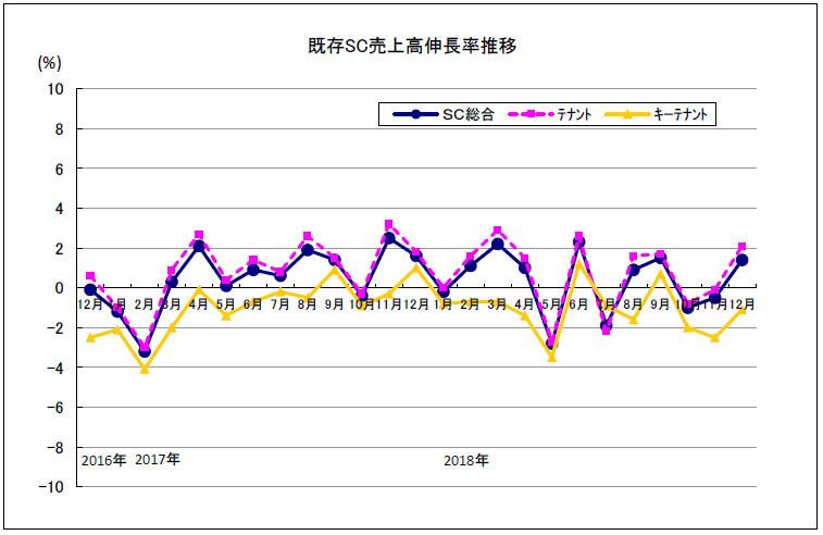 12月SC統計|既存SC1.4%増/地方・キーテナント苦戦/テナントはプラス