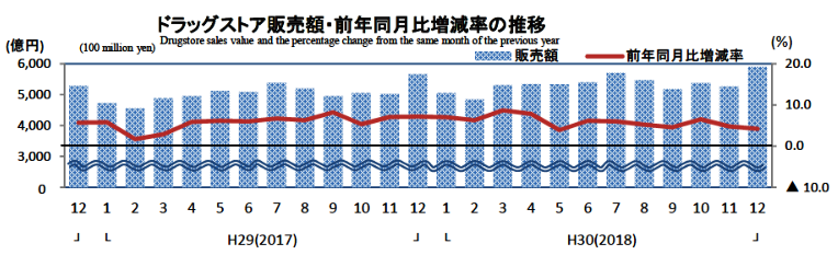 12月ドラッグストア統計|販売額4.2%増/2018年6.4兆円で5.9%増収