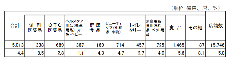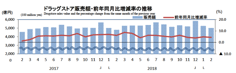 2月ドラッグストア統計|販売額4.4%増・店舗数5%増/調剤医薬品8.5%増