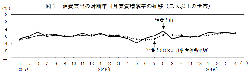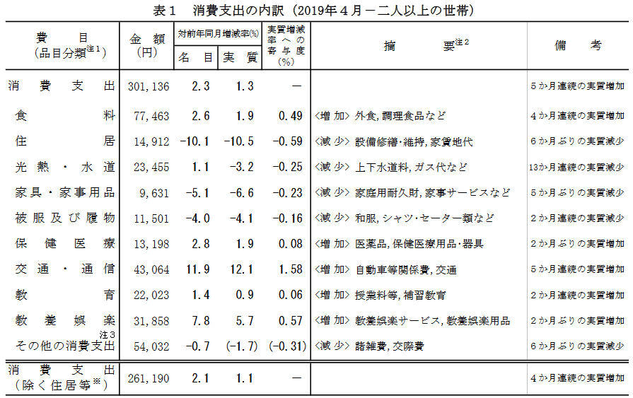 4月家計調査統計|二人以上消費支出1.3%増/二人以上の勤労世帯は0.3%減
