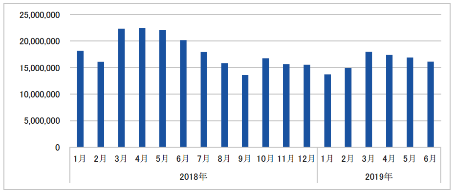 データマーケティングの(株)True Data(東京都港区、米倉裕之社長)が、全国ドラッグストアのID-POSデータ解析による2019年6月のインバウンド消費動向調査を発表した。