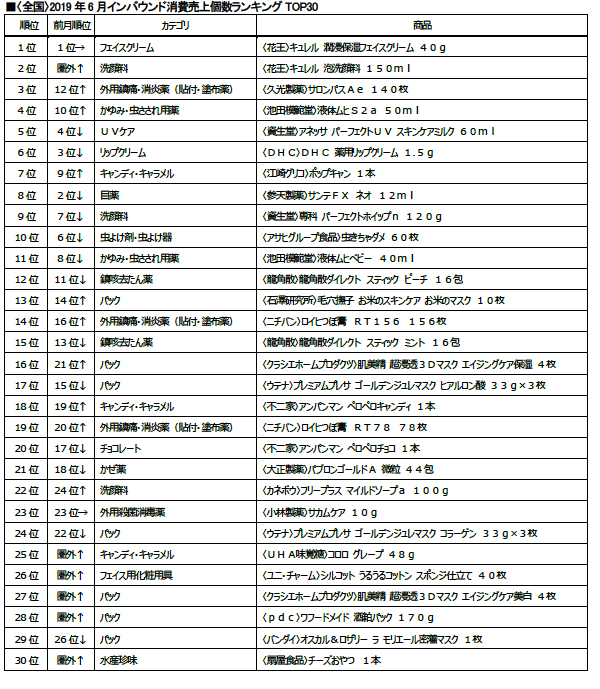 True Data news|ドラッグストア6月インバウンド調査「洗顔料」、1位キュレル