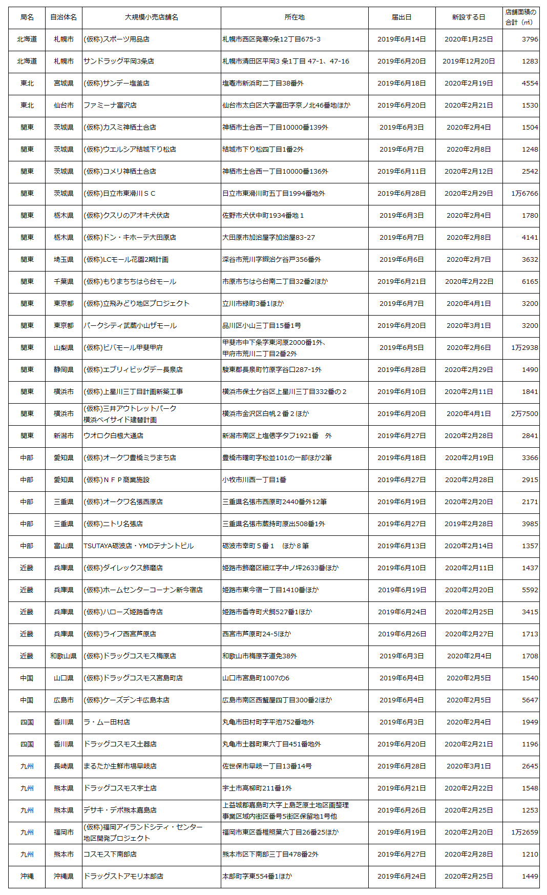 経済産業省から6月の「大規模小売店舗立地法にともなう新設届出申請」が発表された。申請件数は38件。