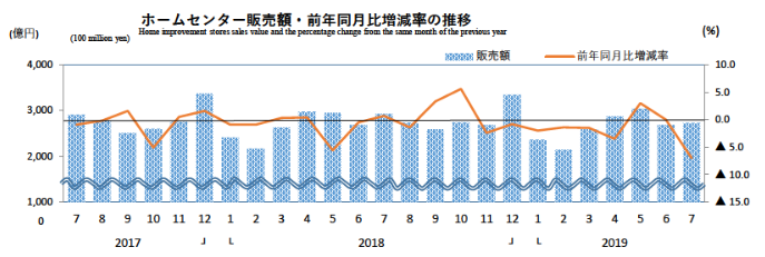 7月ホームセンター統計|販売額2726億円7.0%減/ニトリ・DCM・コーナン減収