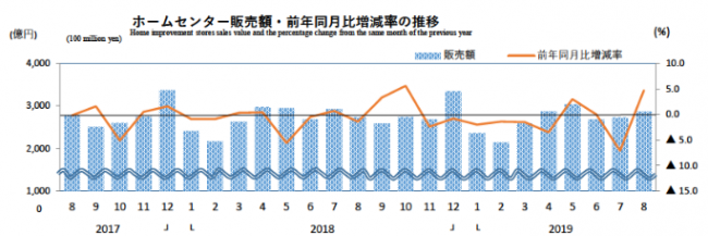 8月ホームセンター統計|販売額2866億円4.7%増/消費増税駆け込み需要発生