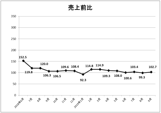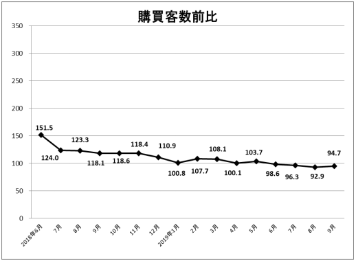 日本百貨店協会のインバウンド推進委員会から9月の「外国人観光客の売上高・来店動向」が報告された。93店舗の調査結果だ。