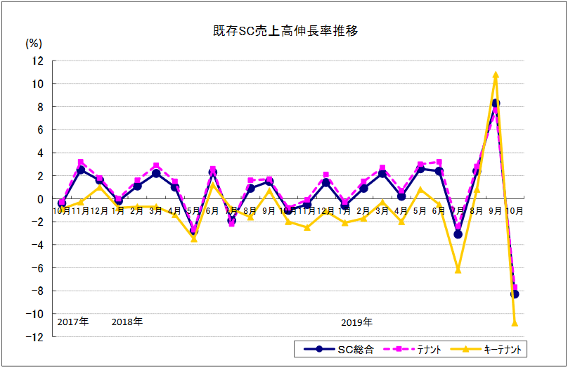 10月SC統計|既存SC売上高8.3%減/駆け込み需要反動減と台風被害で大幅減