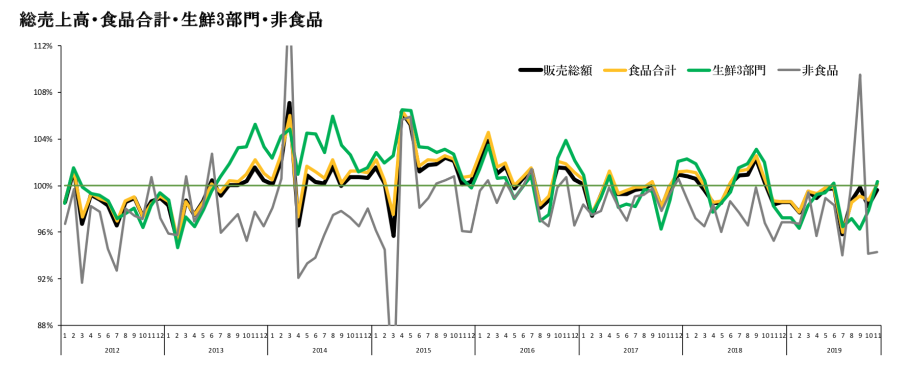 11月スーパーマーケット統計|13カ月連続既存店前年割れ/消費増税から回復