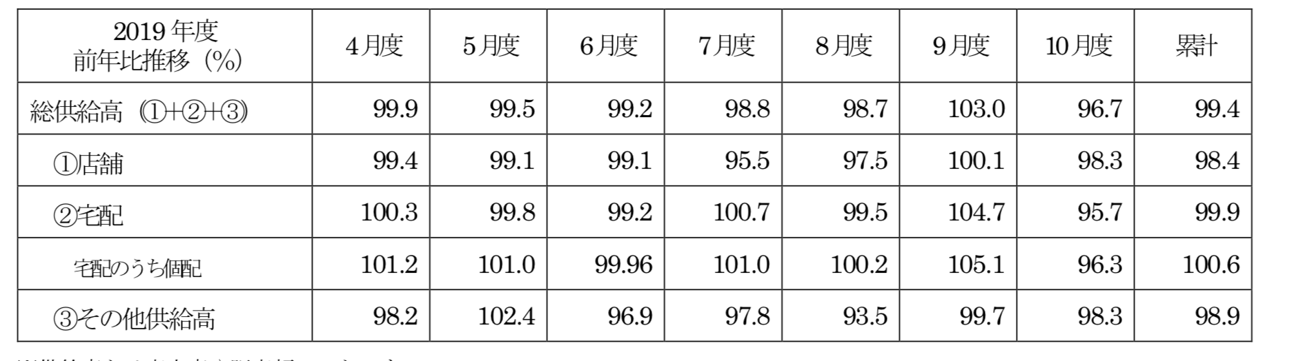 店舗販売は727億7600万円の前年比3.6%減。宅配は1432億1800万円で前年比増減なし、宅配のうちの個配は100億6550万円で前年比3.0%割れとなった。個配は101.4%と前年並みに復調した。売上高トップシェアでは45.5%を占めた。
