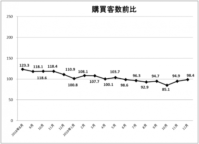 12月百貨店インバウンド動向| 免税売上高0.8%減、’19年客数は8年ぶりに減少
