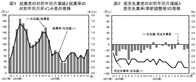 総務省統計局が2019年12月の「労働力調査(基本集計)」速報を発表した。就業者は6737万人と前年同月に比べて81万人増加した。2014年1月から84カ月連続で前年同月を上回った。これは7年連続ということになる。