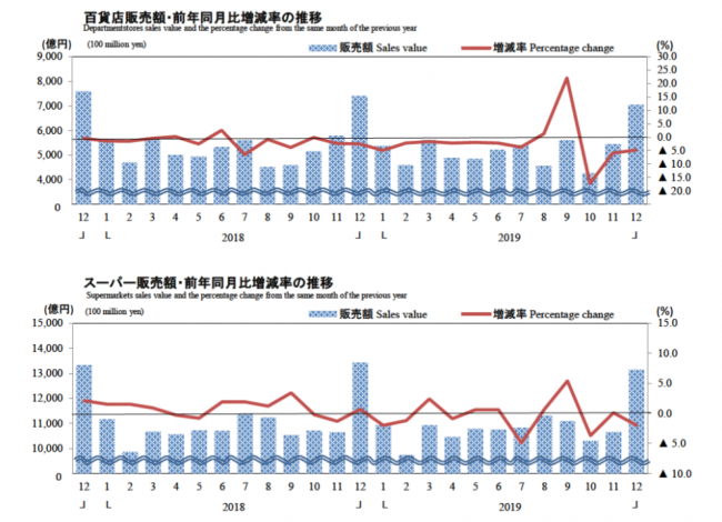 経済産業省が2019年12月度の商業動態統計速報を発表した結果、2019年度通年の統計が速報ではあるが出揃った。
