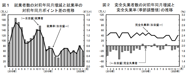 1月労働力調査|就業率60.3%/完全失業率は2.4%で0.2ポイント上昇