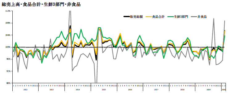 つまり2月は新型コロナウイルスによって異常な消費活動が発生し、商品需要も偏った。しかしながらスーパーマーケットにとっては16カ月ぶりに既存店の前年クリアとなった。