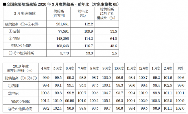 3月日生協統計|総供給高2317億円12%増/巣ごもり消費で個配17%増