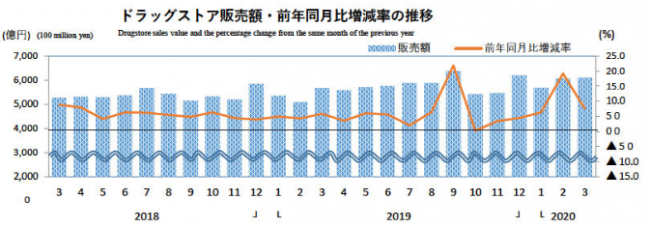 3月ドラッグストア統計|6096億円7.5%増/ツルハ15%増・マツキヨ11%減