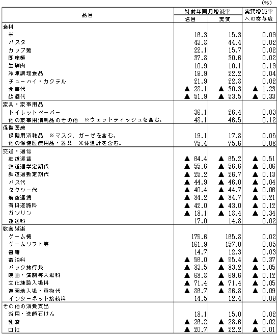 買い溜め購買などの現象が家計調査に顕著に表れた。