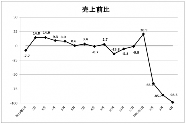 4月百貨店インバウンド動向|免税売上高98.5%減・客数99.5%減の2400人