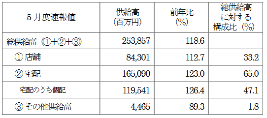 5月日生協統計|総供給高2539億円18.6%増/店舗12.7%・宅配23.0%の伸長