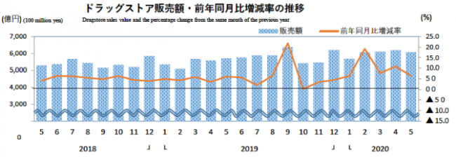 5月ドラッグストア統計|売上高6.4%増/コスモス15.2%増・マツキヨ13.7%減
