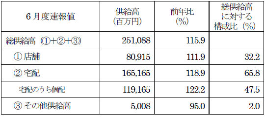 6月日生協統計|総供給高15.9%増/店舗11.9%・宅配18.9%・個配22.2%の伸長