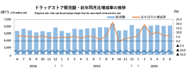 6月ドラッグストア統計|売上高6.5%増/コスモス10.5%増・マツキヨ9.4%減