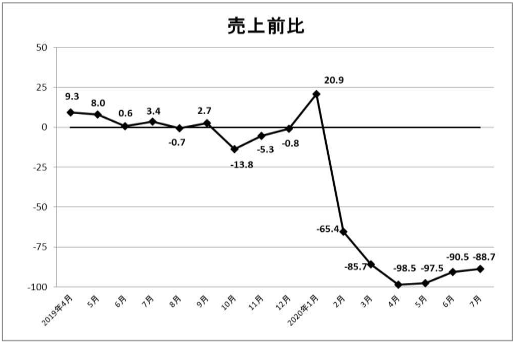 海外渡航者の入国制限が継続しているため、6月から若干回復したものの、7月も厳しい状況にある。