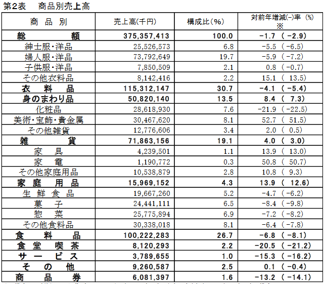 10月百貨店統計|売上高3753億円の1.7%減/国内市場は13カ月ぶりに増収