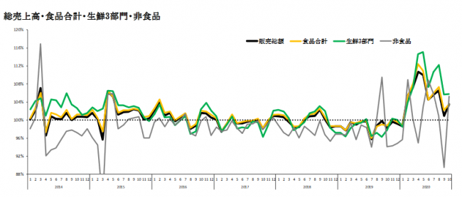 10月スーパーマーケット統計|総売上高4.4%増・既存店3.6%増/生鮮3部門好調