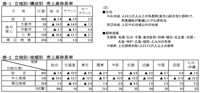 テナントは前年同月比3.5%減、キーテナントは2.3%増。キーテナントは前年に高額品を扱う百貨店を中心に10.8%減と大幅なマイナスだった反動が影響し増収となった。