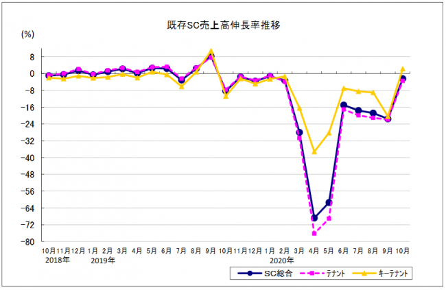 10月SC統計|既存SC売上高2.4%減/ Go Toトラベル&「鬼滅の刃」集客に貢献