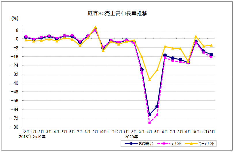 12月SC統計|既存SC売上高14.4%減/コロナ第3波で都市部で客数大幅減
