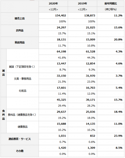 12月通販統計|売上高1544億円11.2%増/家庭用品21%増・衣料品16%増